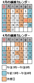 詳細は、このホームページ記載の、鍼療カレンダーをご覧ください。